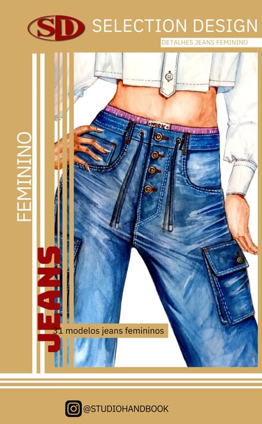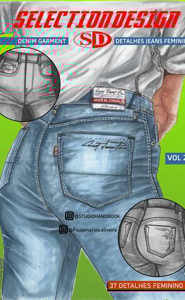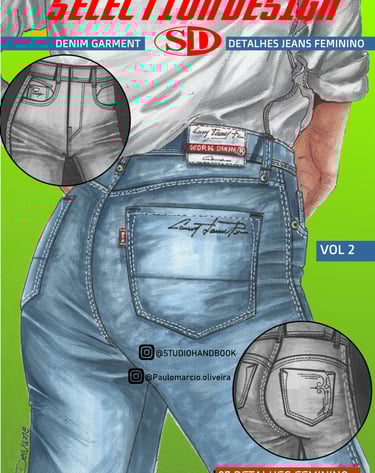 BOOKS DE DETALHES EM JEANS: Foram criados para servir como uma ferramenta prática e um catálogo de ideias e referências para estilistas que desejam facilitar o processo criativo e desenvolver peças autênticas, bem construídas e alinhadas às tendências do mercado.